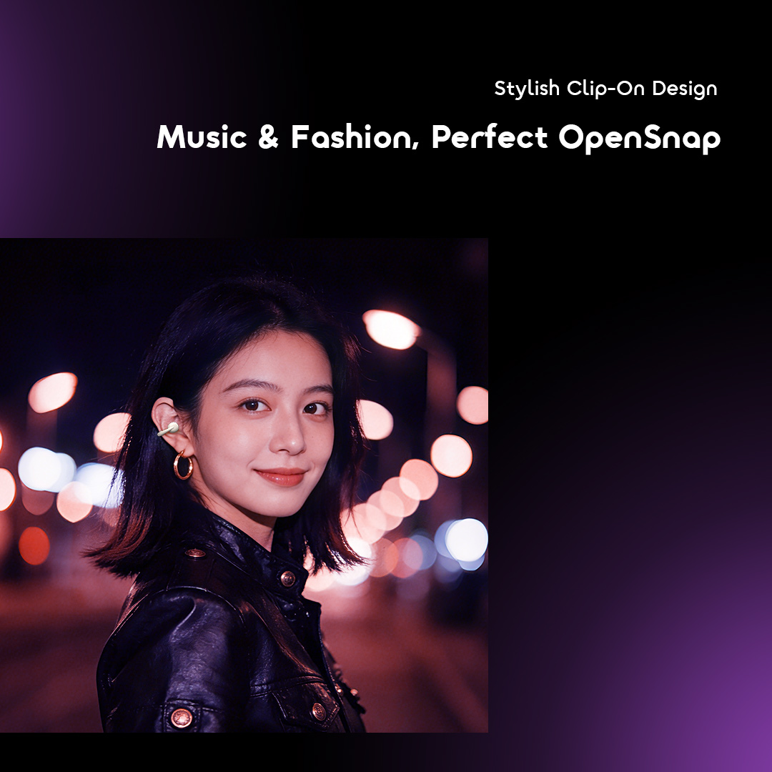 OpenSnap breaks away from traditional earphone designs with an all-new clip-on style. It not only delivers an immersive music experience, but also doubles as a stylish accessory to elevate your look.