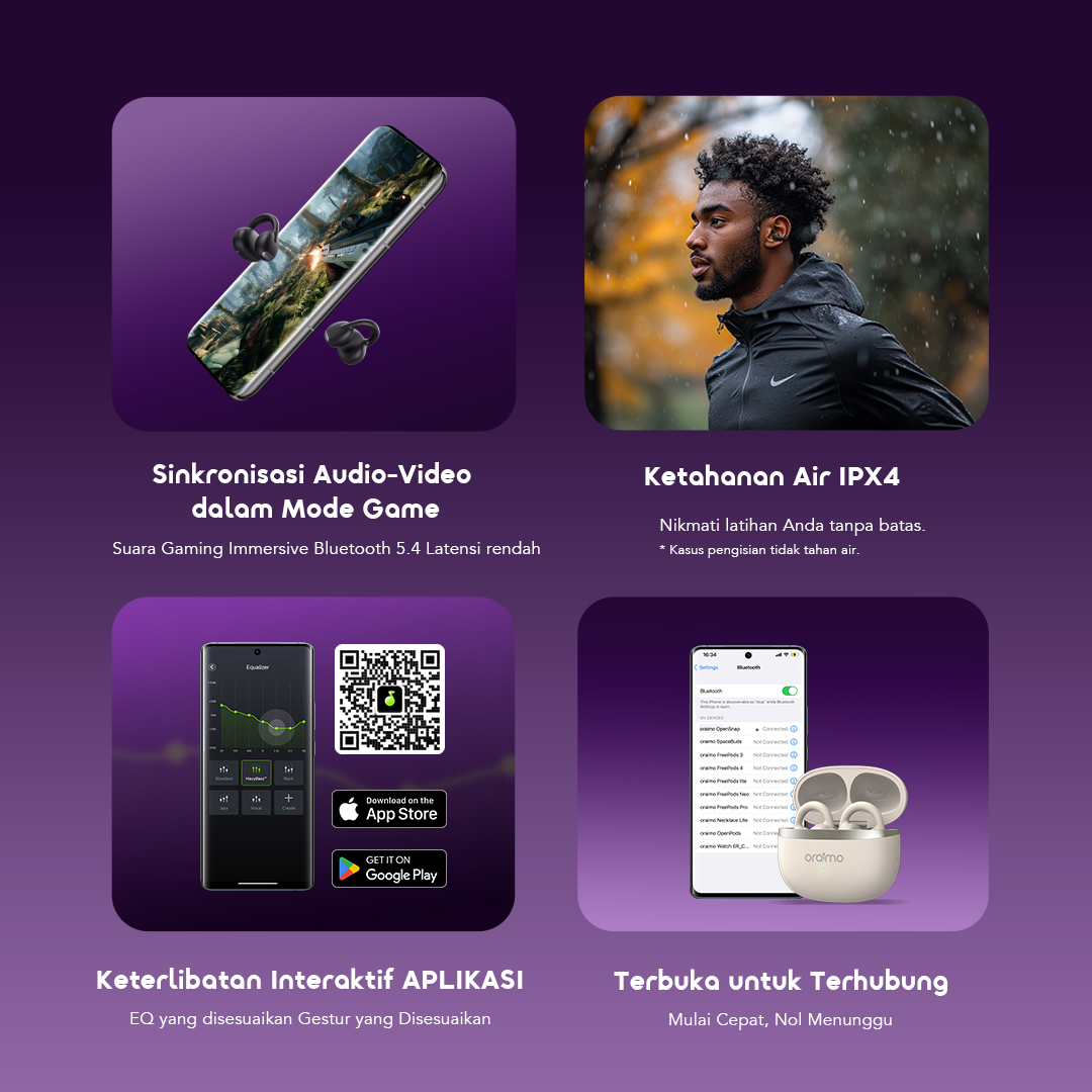 Dilengkapi dengan driver dinamis Φ10,8mm dan dirancang khusus untuk mengarahkan port suara ke saluran telinga, bersama dengan algoritma peningkatan bass HavyBass™ eksklusif oraimo, Anda dapat menikmati bass yang kuat bahkan selama aktivitas di luar ruangan.