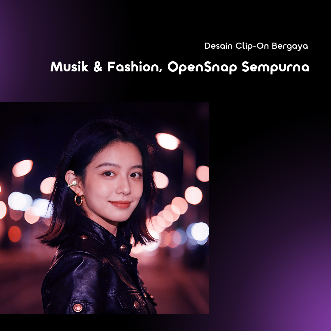 OpenSnap memisahkan diri dari desain earphone tradisional dengan gaya clip-on yang serba baru. Ini tidak hanya memberikan pengalaman musik yang imersif, tetapi juga berfungsi ganda sebagai aksesori bergaya untuk meningkatkan penampilan Anda.