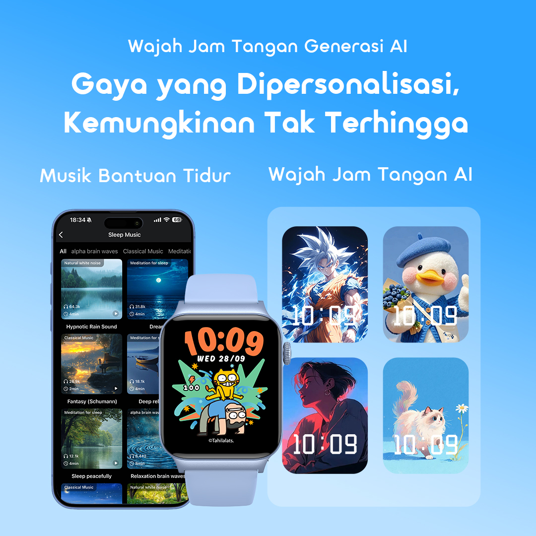 Watch 6 Max tidak hanya menawarkan tampilan jam dinamis hasil generasi AI melalui aplikasi oraimo health, tetapi juga meningkatkan relaksasi Anda dengan musik pengantar tidur yang menenangkan. Nikmati desain cerah yang dapat disesuaikan yang mencerminkan suasana hati dan kepribadian Anda, sementara melodi yang menenangkan membantu Anda bersantai.